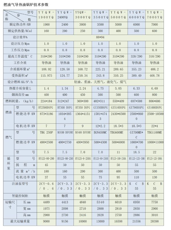 YY(Q)W卧式燃油/气导热油炉(有机载热体炉)是一种新型供热设备,以燃油、气为热源,以导热油为载体通过循环泵强制热载体通过循环油泵强制热载体液相循环,将热量输送给用热设备后在返回热炉从新加热。受热面结构紧凑,受热面由内、中、外(或内、外)密排的圆盘管构成,内盘管为辐射受热面,中、外盘管与内盘管的外表面构成对流受热面。